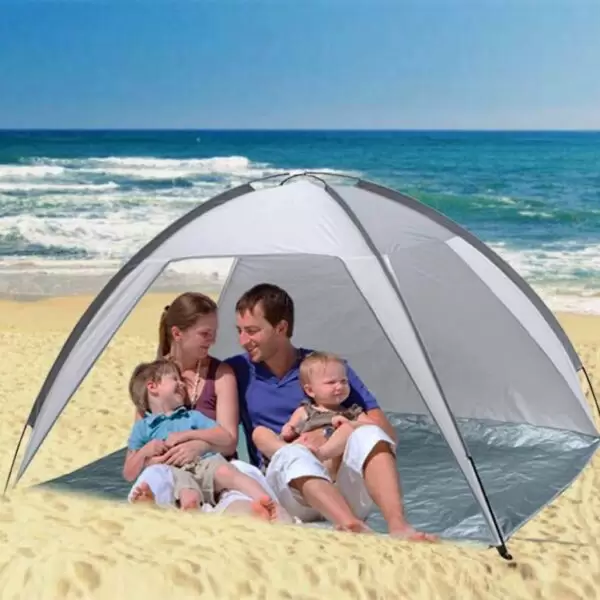 – אוהל חוף איכותי גדול במיוחד להגנה מהשמש עשוי בד לייקרה נעים אלסטי ודוחה חול
