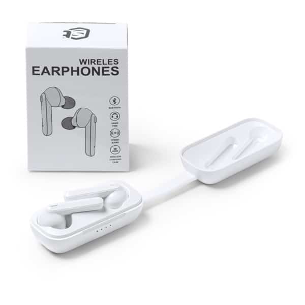 אוזניות אלחוטיות בלוטות' 5.0 עם נרתיק טעינה. קלות מאוד לשימוש הודות לכפתור הרב-תכליתי המשולב בשתי האוזניות. פונקציית דיבורית וסוללה נטענת באמצעות טכנולוגיה אלחוטית. כבל כלול.