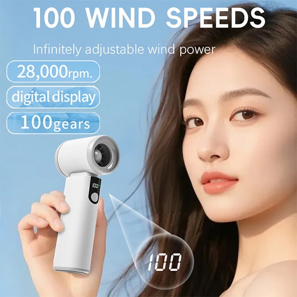 "פאן-טק" מאוורר נייד נטען עוצמתי בעל עיצוב קומפקטי טווח אוורור מתכוונן עד 10 דרגות מהירות וצג דיגיטלי