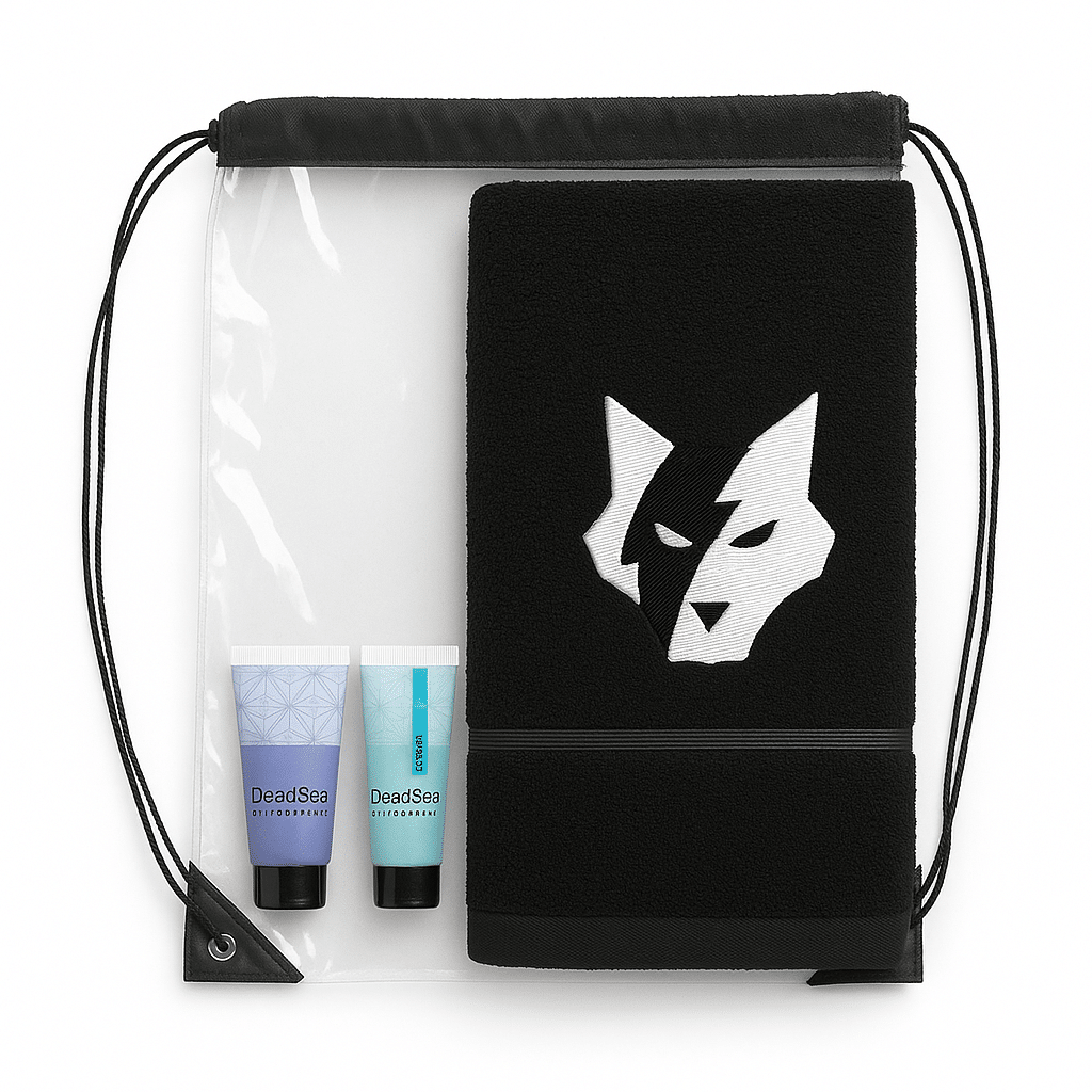 מגבת כותנה שחורה איכותית כולל רקמת לוגו.